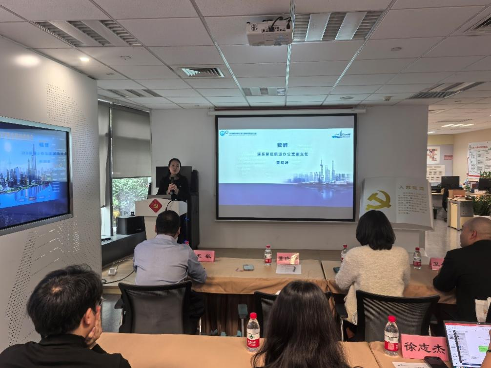 此外,浦东航运全球通政协委员工作室的委员们也受邀出席本次活动。工作室由15位政协委员发起组建,于2023年6月5日揭牌,是浦东航运工作的政协委员团结联谊、汇智聚力、建言资政的新平台、新渠道。今年,工作室密切关注航贸一体化、尤其是航贸大数据这一热点,围绕航运贸易融合创新与服务功能提升、数字化智慧化绿色化航运、船供药械立法等主题展开年度工作。据介绍,作为主办方之一,浦东外商投资企业协会积极参与了两届浦东航运周活动的举办。同时,为深化行业交流协作,协会也在筹备成立航运专委会,携手推动航运业迈向高质量发展新纪元。在主题发言环节,工作室委员、中远海运科技研发创新中心总工程师王敏为大家带来了“低碳宝-赋能航运绿色低碳智能发展”的主题分享。王敏详细介绍了低碳宝在航运绿色低碳智能发展方面的应用和实践,强调了技术创新和政策引导在推动航运业转型中的重要作用。