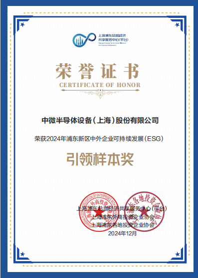 中微半导体设备(上海)股份有限公司荣获2024年浦东新区中外企业可持续发展(ESG)引领样本奖